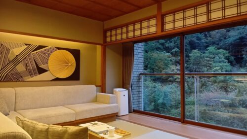 そして15時には、今回の旅の目的でもある「界 箱根」へ向かいました。旧街道沿いに佇む静かな宿で、山の中にひっそりと隠れるように建っている雰囲気がとても好みでした。