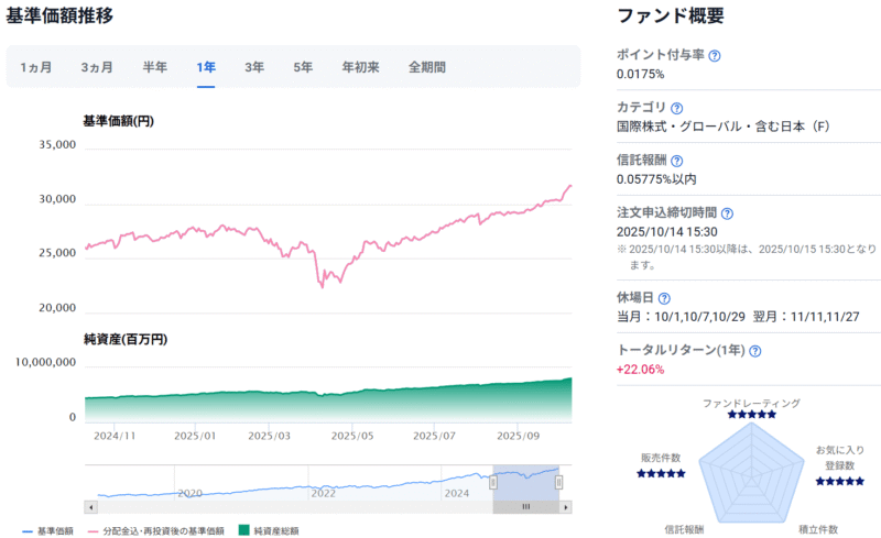 NISAのつみたても、残すところ今年はあと2回となりました。2025年もあっという間に終わりが見えてきましたね。トランプショック以降、株価が勢いを取り戻し、私の投資しているオールカントリーも最高値更新が続いています。久しぶりに確認したところ、リターンがなんと+22%になっていました。