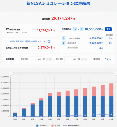 今のところの計画では、あと3年で投資枠をすべて埋め、その後は年利5%で運用していく予定です。シミュレーション上では、61歳の時におよそ3,000万円に達する見込み。その時点から毎月15万円ずつ取り崩していく計画を立てています。年金も同時に繰上受給を考えており、月10万円ほどになる見込みです。合計25万。
