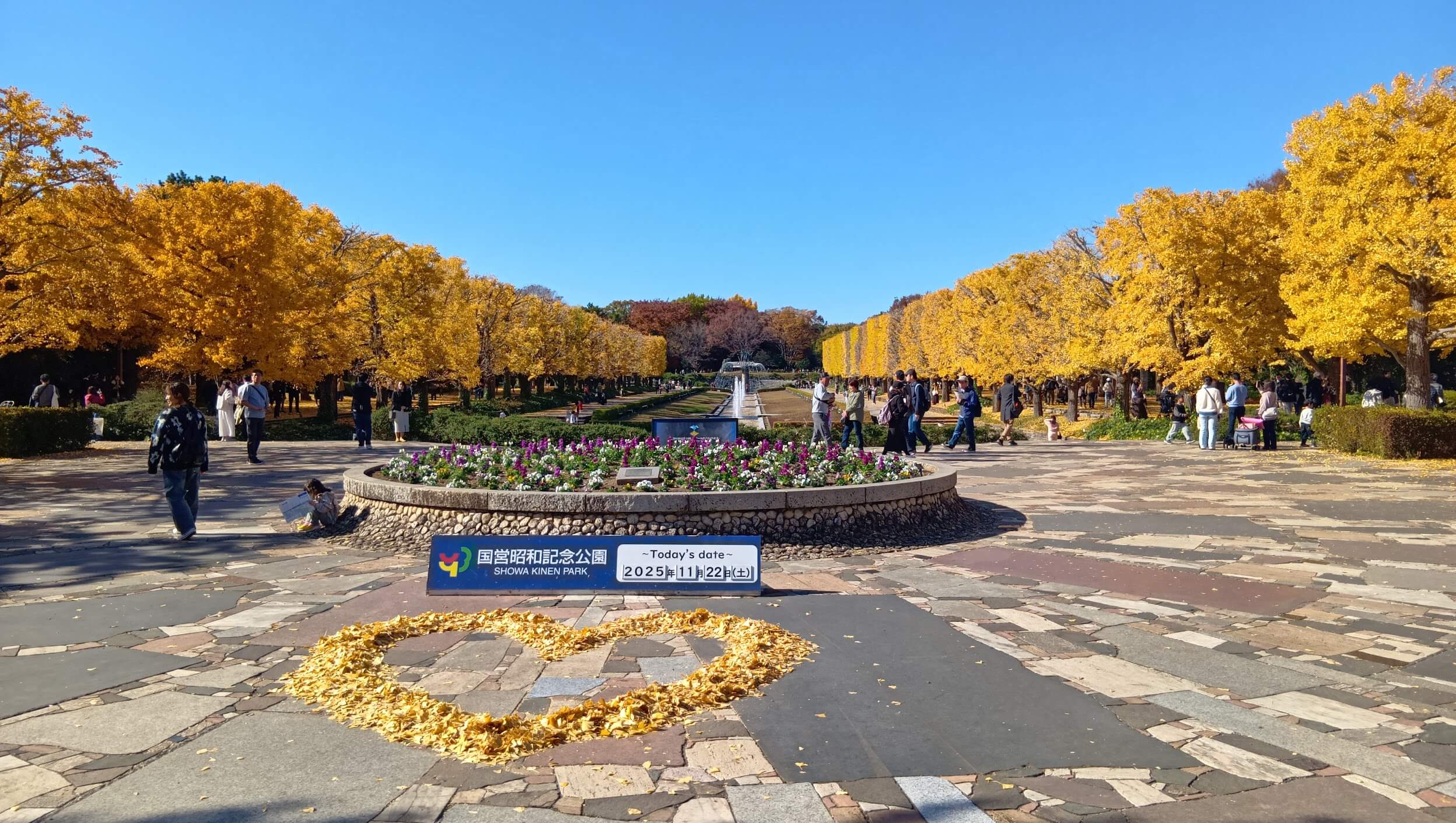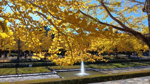 園内で特に印象的だったのが、まっすぐ続くイチョウ並木です。黄金色の葉が日差しを受けて輝き、風が吹くたびにひらひらと舞う光景が美しかったです。写真を撮っている人も多く、まさにこの時期ならではの景色を堪能できました。